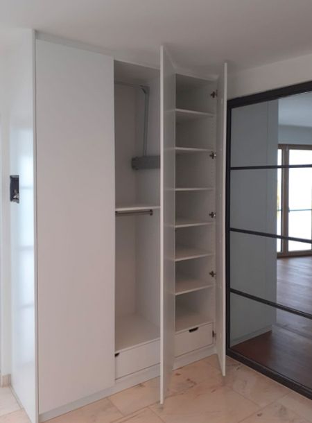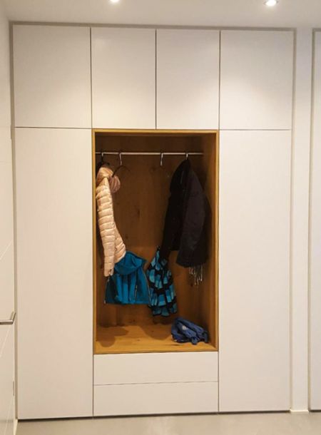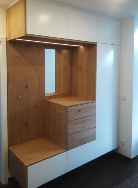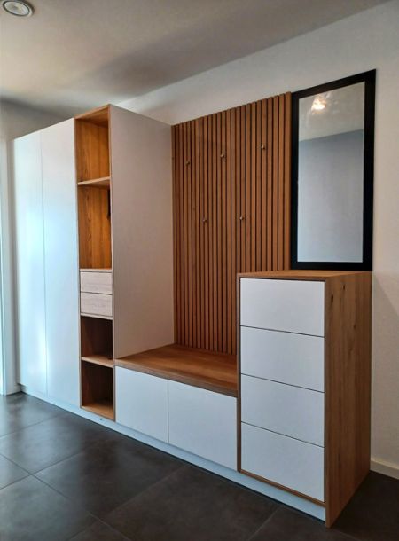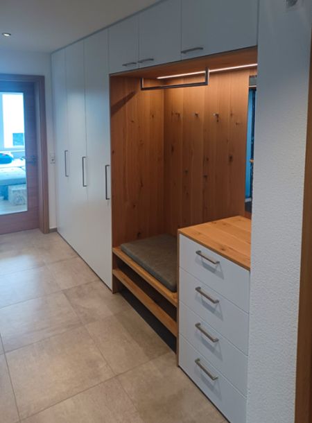 Abgestimmt auf Ihre Räumlichkeiten fertigen wir Garderoben, Regale und Schuhschränke ganz nach Ihren Wünschen.
