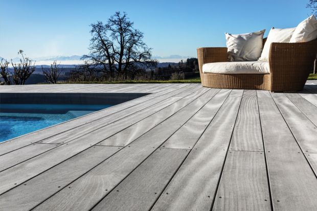 Bringen Sie Ihr Zuhause ins Freie. Wenn Sie Holz für Ihre Inneneinrichtung nutzen, wieso nicht auch für Ihre Terrasse? Ein Holzboden ist nicht nur witterungsresistent, sondern schafft außerdem ein harmonisches Bild mit der Natur.